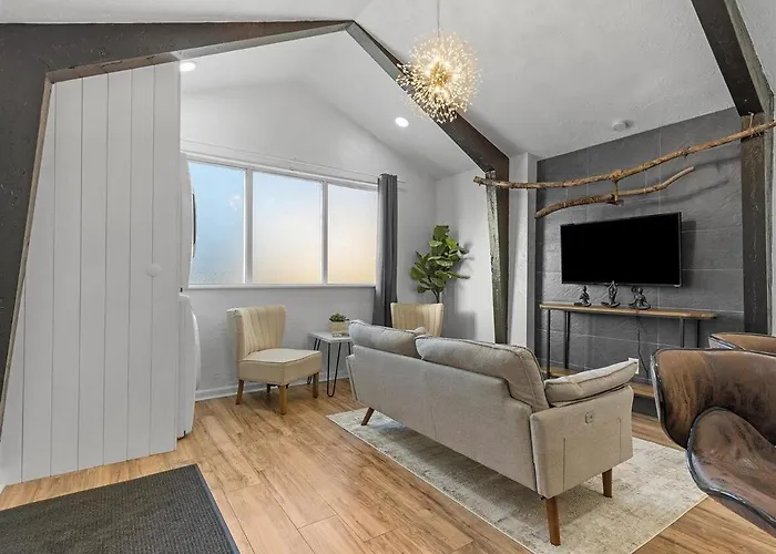 Nestled in the vibrant heart of Lawrenceville, the Lawrenceville Central!1 Modern And Cozy One Bedroom Apartment with Free Street Parking offers guests an inviting ambiance crafted for relaxation and comfort. This thoughtfully designed retreat features spacious layouts complemented by contemporary furnishings, ensuring a serene stay for every visitor. The apartment exudes modern charm with touches that make it feel like a true home, perfect for both short getaways and extended visits. Each room in Lawrenceville Central is equipped with a myriad of amenities, including complimentary Wi-Fi, flat-screen televisions, and kitchenettes, granting guests the freedom to unwind or prepare a delicious meal. The inviting interiors reflect a harmonious blend of style and functionality, allowing guests to kick back after exploring all that the area has to offer. High-quality linens and plush bedding ensure a restful night's sleep, making it a prime choice for solo travelers, couples, or small families.
